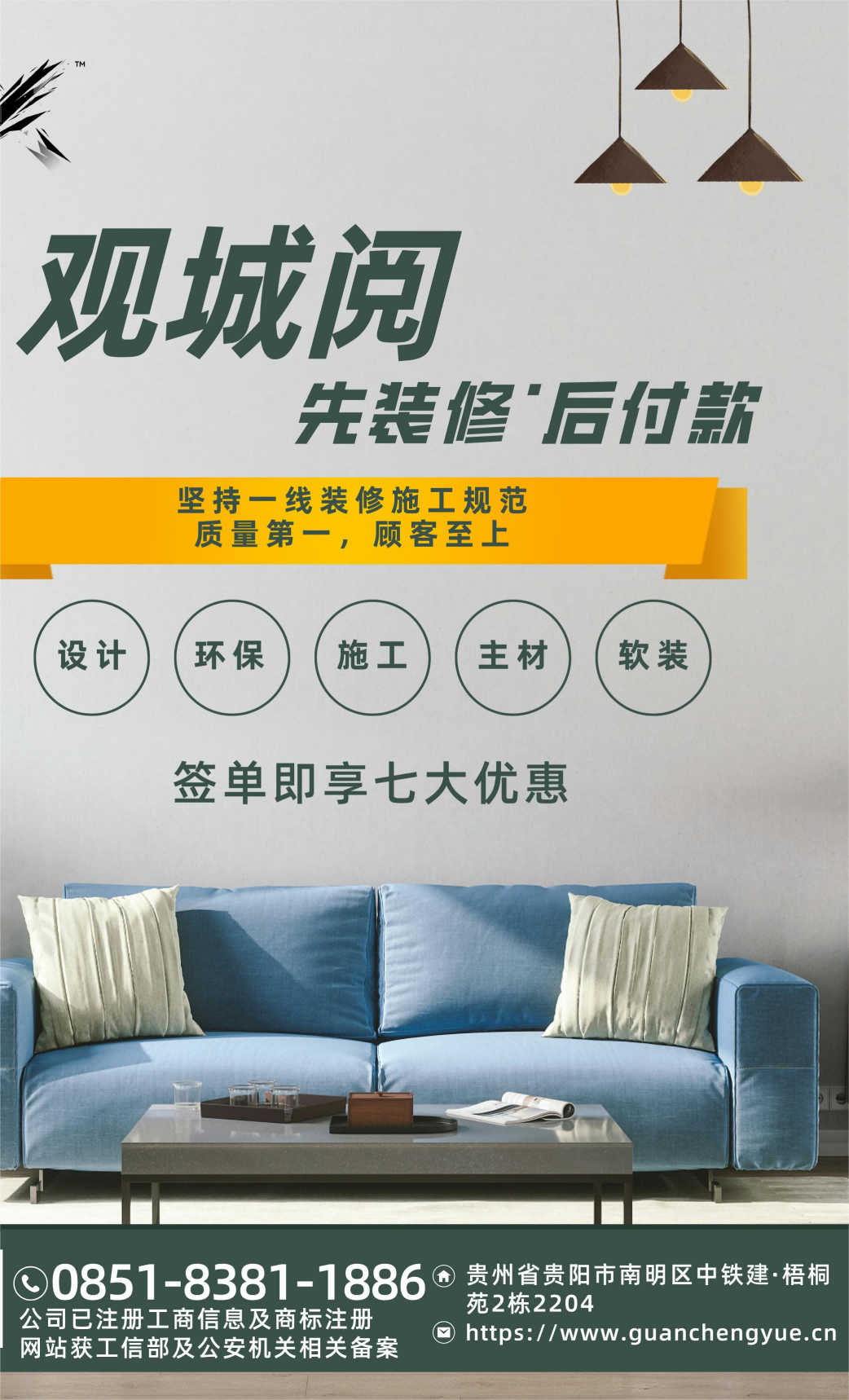 贵州观城阅设计有限公司由洛安先生创办于2024年,2024年经国家工商行政总局商标局注册,以”观城阅”为品牌商标标识。观城阅是一家以承担各类建筑室内、室外装饰装修工程设计和施工为主,销售建筑装饰材料、装饰工艺品和家具为辅的专业设计装饰公司。且具有强大专业实力的装饰装修设计、施工品牌。 观城阅坚持一线装修施工规范,质量第一,顾客至上,创新的轻资产运营理念,为客户削除多余成本支出,提供降本不降质的服务,坚持诚实守信的品牌发展之路。2024在省内首先发布了好装修也不贵的宣言,被称赞为行业发展的创新者、排头兵,忠于优良品质,始于低成本运作、让客户的资金最大化利用,更多的资金装进客户的新家。 观城阅秉承全案设计落地专长,为客户提供的一键式落地服务,真正做到省事省